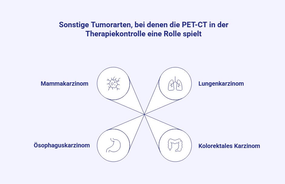 Die PET-CT ist in der Onkologie nicht nur bei Lymphomen in der Nachsorge und Response-Bewertung eine etablierte Untersuchung. Das Verfahren wird bei einer Reihe verschiedener maligner Erkrankungen eingesetzt, um ein Ansprechen auf die Behandlung zu untersuchen.