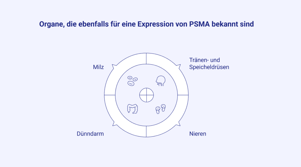 Auch die PSMA-Bildgebung unterliegt Einschränkungen. In der Befundung zu berücksichtigen ist die Tatsache, dass das prostataspezifische Membranantigen nicht ausschließlich in Zellen der Prostata zu finden ist. PSMA wird physiologisch in verschiedenen Organen exprimiert.