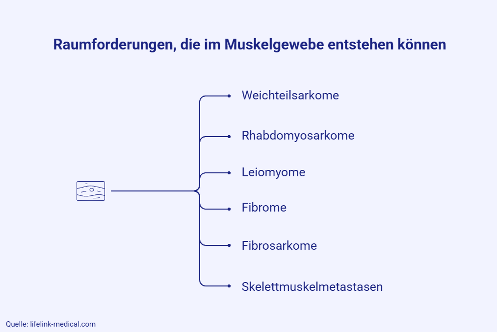 Primäre Tumorerkrankungen der Muskeln sind im medizinischen Alltag zwar eher selten, bei auffälligen Tastbefunden können diese allein anhand des klinischen Bilds aber nicht einfach ausgeschlossen werden. Sofern sich aus der Anamnese Anhaltspunkte für eine bösartige Neubildung ergeben, lässt sich der Verdacht mittels bildgebender Verfahren abklären.