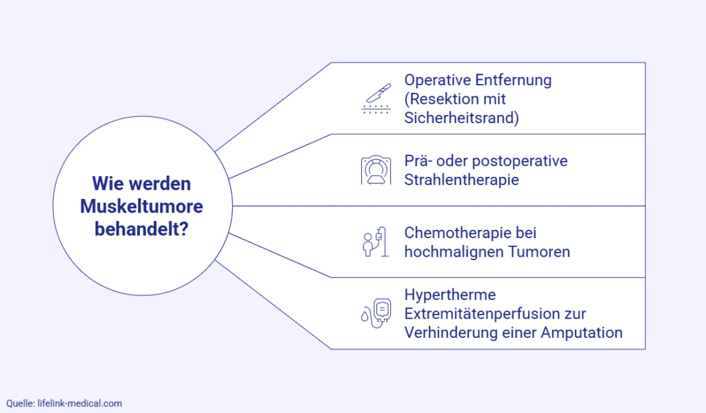 Um den Verdacht auf das Vorliegen eines Weichteiltumors abzusichern, wird eine Gewebeprobe entnommen. Aus der histologischen (feingeweblichen) Untersuchung ergeben sich Informationen bezüglich der Tumorvariante und der Tumorklassifikation. Basierend auf den Befunden entscheiden interdisziplinäre Tumorboards (mit Ärzten verschiedener Fachrichtungen besetzte Gremien) über die Behandlungsschritte, zu denen neben der operativen Entfernung (Resektion) oft auch eine Kombination verschiedener Verfahren – bis hin zu individuellen, immunspezifischen Therapien – gehört.